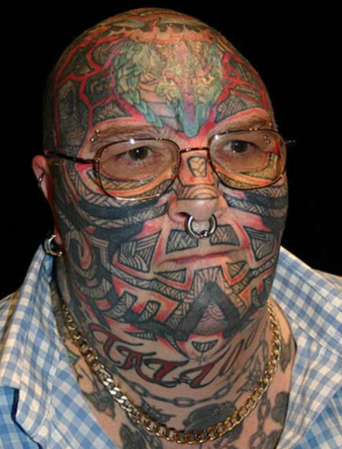 Thank God he got the word 'tattoo' tattooed across his neck or I would have never figured out what all that crap was.